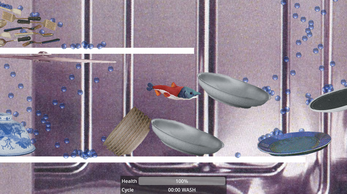 You are a salmon. Someone seems to have fancied themselves a chef, placing you in a dishwasher to be cooked. Can you escape the wash cycle before meeting an unfortunate end?